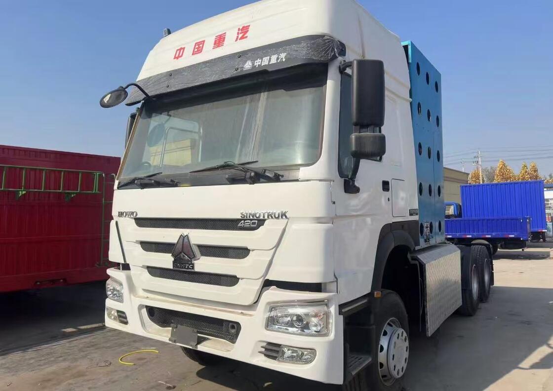 The CNG-powered HOWO 6x4 Tractor Truck, identified as model ZZ4257N3847E1CB, is a heavy-duty vehicle designed for sustainable and efficient freight transport. It is built on a sturdy double-layer frame that provides enhanced durability and load-bearing stability. Powering the truck is a Weichai MT13.43-50 engine, which delivers 430 horsepower and meets Euro V emission standards, making it a cleaner alternative to traditional diesel engines with significantly lower emissions of pollutants such as nitrogen oxides and particulates.